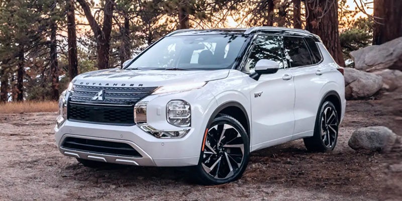 The 2025 Outlander PHEV comes in 4 trims, each with unique exterior features that blend sophistication and sportiness. The introductory ES trim starts with 18-inch alloy wheels, LED headlights with headlight washers, and an active shutter grille, while the SE trim takes a more aggressive approach. Its 20-inch 2-tone alloy wheels, silver bumper garnishes, and integrated roofline spoiler are balanced with high-end conveniences like rain-sensing wipers, a hands-free liftgate, LED fog lights, and power-folding heated side mirrors. The SEL indulges you with a power panoramic sunroof incorporated into the distinctive black roof, silver roof rails, and bold 20-inch wheels. Embrace your dark side with the SEL Black Edition, showing off black alloy wheels, black roof rails, black hood emblem, black badging, and dark chrome window trim, creating a rich, dramatic look. Across all trims, the sculpted aerodynamic profile balances elegance with purposeful design to stand out on every road.