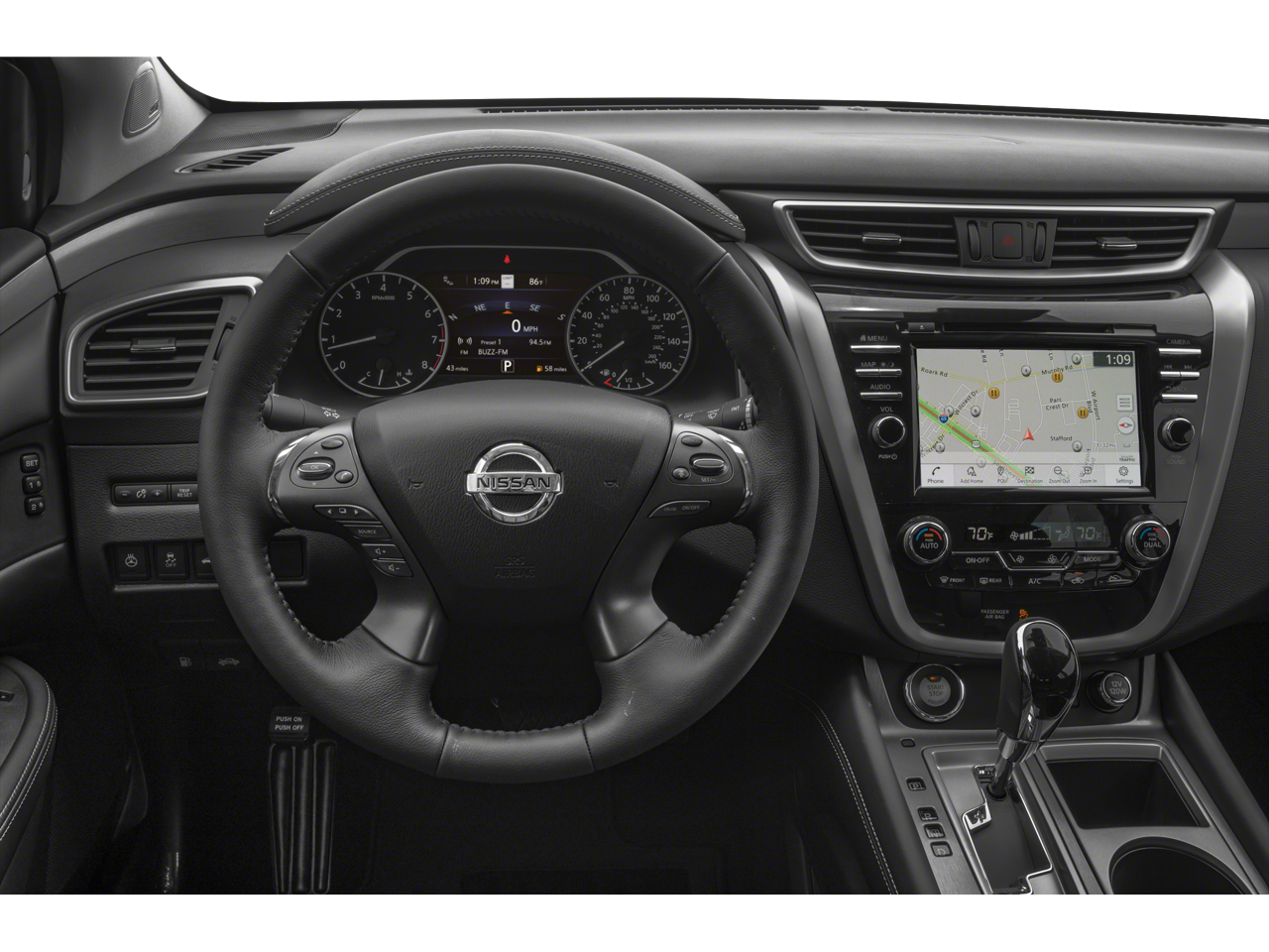 Cargo Package (Cargo Area Protector, Cargo Net, First Aid Kit, and Retractable Cargo Cover), CVT with Xtronic, AWD, 11 Speakers, 4-Wheel Disc Brakes, 4.667 Axle Ratio, ABS brakes, Air Conditioning, Alloy wheels, AM/FM radio: SiriusXM, AM/FM/CD/MP3/WMA Audio System, Auto High-beam Headlights, Auto tilt-away steering wheel, Auto-dimming Rear-View mirror, Automatic temperature control, Blind Spot Warning, Brake assist, Bumpers: body-color, Carpeted Floor Mats & Carpeted Cargo Mat, CD player, Child-Seat-Sensing Airbag, Climate-Controlled Front Bucket Seats, Compass, Delay-off headlights, Driver door bin, Driver vanity mirror, Dual front impact airbags, Dual front side impact airbags, Electronic Stability Control, Emergency communication system: NissanConnect Services (first 6 months included), Exterior Parking Camera Rear, Four wheel independent suspension, Front anti-roll bar, Front Bucket Seats, Front Center Armrest, Front dual zone A/C, Front fog lights, Front reading lights, Fully automatic headlights, Garage door transmitter: HomeLink, Heated door mirrors, Heated front seats, Heated rear seats, Heated steering wheel, Illuminated entry, Knee airbag, Low tire pressure warning, Memory seat, Navigation system: NissanConnect Navigation, NissanConnect featuring Apple CarPlay and Android Auto, NissanConnect Services Powered By SiriusXM, Occupant sensing airbag, Outside temperature display, Overhead airbag, Overhead console, Panic alarm, Passenger door bin, Passenger vanity mirror, Power door mirrors, Power driver seat, Power Liftgate, Power moonroof, Power passenger seat, Power steering, Power windows, Radio data system, Rear anti-roll bar, Rear reading lights, Rear seat center armrest, Rear side impact airbag, Rear window defroster, Rear window wiper, Remote keyless entry, Roof rack: rails only, Security system, Semi-Aniline Leather-Appointed Seat Trim, Speed control, Speed-sensing steering, Speed-Sensitive Wipers, Split folding rear seat, Spoiler, Steering wheel memory, Steering wheel mounted audio controls, Tachometer, Telescoping steering wheel, Tilt steering wheel, Traction control, Trip computer, Turn signal indicator mirrors, Variably intermittent wipers, Ventilated front seat