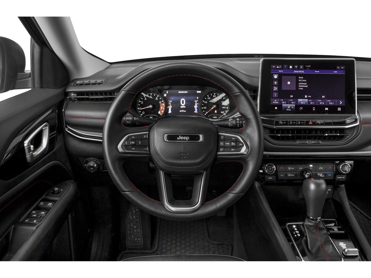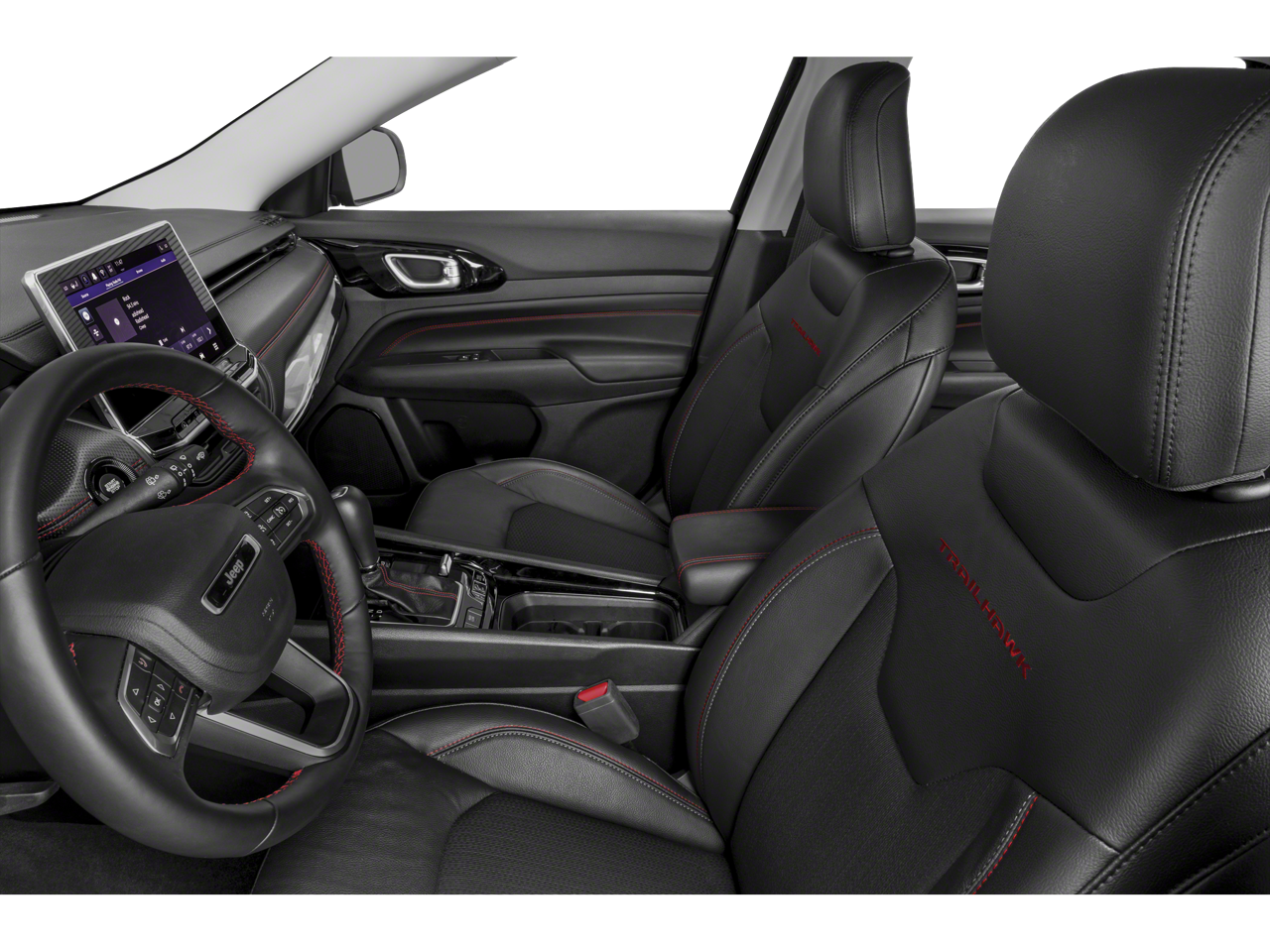 Quick Order Package 2GE, Trailer Tow Group (4 Pin Wiring Harness and Class III Receiver Hitch), Trailhawk Convenience Group (115V Auxiliary Power Outlet, 2nd Row USB Type A/C Charge Only, Heated Front Seats, Leather Wrapped Steering Wheel, Power 2-Way Driver Lumbar Adjust, Power Adjust 8-Way Driver Seat, Remote Start System, Reversible Carpet/Vinyl Cargo Mat, Vehicle Information Center, and Windshield Wiper De-Icer), 4WD, 10.1" Touchscreen Display, 4-Wheel Disc Brakes, 4.334 Axle Ratio, 6 Speakers, ABS brakes, Air Conditioning, Alloy wheels, AM/FM radio: SiriusXM, Anti-whiplash front head restraints, Auto High-beam Headlights, Auto-dimming Rear-View mirror, Automatic temperature control, Brake assist, Bumpers: body-color, Compass, Delay-off headlights, Disassociated Touchscreen Display, Driver door bin, Driver vanity mirror, Dual front impact airbags, Dual front side impact airbags, Electronic Stability Control, Emergency communication system: SiriusXM Guardian, Four wheel independent suspension, Front anti-roll bar, Front Bucket Seats, Front Center Armrest w/Storage, Front dual zone A/C, Front fog lights, Front License Plate Bracket, Front reading lights, Fully automatic headlights, Global Telematics Box Module (TBM), Heated door mirrors, Illuminated entry, Knee airbag, Leather Shift Knob, Low tire pressure warning, Occupant sensing airbag, Outside temperature display, Overhead airbag, Overhead console, Panic alarm, ParkView Rear Back-Up Camera, Passenger door bin, Passenger vanity mirror, Power door mirrors, Power steering, Power windows, Premium Cloth/Leather Trim Bucket Seats, Radio: Uconnect 5 w/10.1" Display, Rain sensing wipers, Rear anti-roll bar, Rear seat center armrest, Rear window defroster, Rear window wiper, Remote keyless entry, Roof rack: rails only, Security system, Speed control, Split folding rear seat, Spoiler, Steering wheel mounted audio controls, Tachometer, Telescoping steering wheel, Tilt steering wheel, Traction control, Trip computer, Turn signal indicator mirrors, Variably intermittent wipers, and Wheels: 17" x 6.5" Painted Diamond Cut Aluminum.