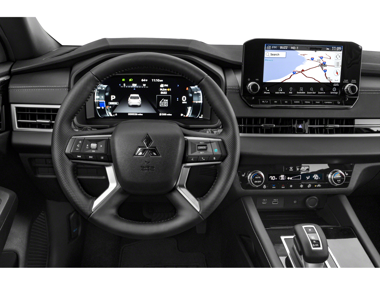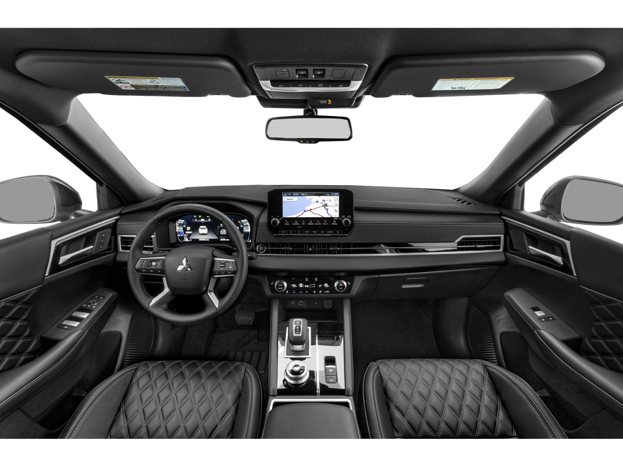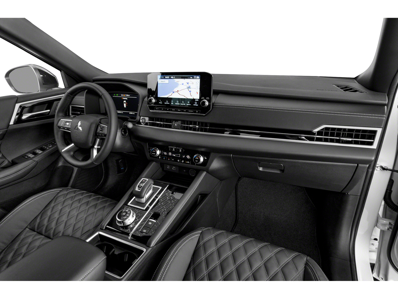 4WD, ABS brakes, Active Cruise Control, Alloy wheels, Electronic Stability Control, Front dual zone A/C, Heated door mirrors, Heated Front Bucket Seats, Heated front seats, Heated rear seats, Illuminated entry, Leather Seat Trim, Low tire pressure warning, Navigation System, Power Liftgate, Power moonroof, Remote keyless entry, Traction control, 3rd row seats: split-bench, 4-Wheel Disc Brakes, 5.694 Axle Ratio, 6 Speakers, Air Conditioning, AM/FM radio: SiriusXM, Android Auto & Apple CarPlay, Auto High-beam Headlights, Auto-dimming Rear-View mirror, Automatic temperature control, Brake assist, Bumpers: body-color, Driver door bin, Driver vanity mirror, Dual front impact airbags, Dual front side impact airbags, Emergency communication system: Mitsubishi Connect w/ 24-month trial, Exterior Parking Camera Rear, Four wheel independent suspension, Front anti-roll bar, Front Bucket Seats, Front Center Armrest w/Storage, Front fog lights, Front reading lights, Fully automatic headlights, Headlight cleaning, Heated steering wheel, Knee airbag, Leather Shift Knob, Leather steering wheel, Memory seat, Occupant sensing airbag, Outside temperature display, Overhead airbag, Overhead console, Panic alarm, Passenger door bin, Passenger vanity mirror, Power door mirrors, Power driver seat, Power passenger seat, Power steering, Power windows, Radio data system, Radio: AM/FM 9.0 Navigation w/Smartphone Link, Rain sensing wipers, Rear air conditioning, Rear anti-roll bar, Rear seat center armrest, Rear side impact airbag, Rear window defroster, Rear window wiper, Reclining 3rd row seat, Security system, Speed control, Speed-Sensitive Wipers, Split folding rear seat, Spoiler, Steering wheel mounted audio controls, Tachometer, Telescoping steering wheel, Tilt steering wheel, Trip computer, Turn signal indicator mirrors, Variably intermittent wipers, and Wheels: 20 Black Alloy.