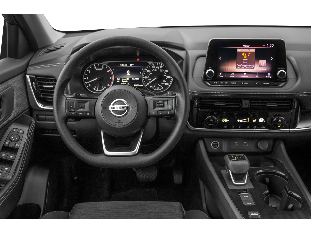AWD, 18 Aluminum Alloy Wheels, 4-Wheel Disc Brakes, 5.604 Axle Ratio, 6 Speakers, ABS brakes, Air Conditioning, Alloy wheels, AM/FM Radio, AM/FM radio: SiriusXM, Auto High-beam Headlights, Automatic temperature control, Brake assist, Bumpers: body-color, Cloth Seat Trim, Delay-off headlights, Driver door bin, Driver vanity mirror, Dual front impact airbags, Dual front side impact airbags, Electronic Stability Control, Emergency communication system: NissanConnect Services, Four wheel independent suspension, Front anti-roll bar, Front Bucket Seats, Front Center Armrest, Front dual zone A/C, Front reading lights, Fully automatic headlights, Heated door mirrors, Illuminated entry, Knee airbag, Low tire pressure warning, NissanConnect featuring Apple CarPlay and Android Auto, Occupant sensing airbag, Outside temperature display, Overhead airbag, Overhead console, Panic alarm, Passenger door bin, Passenger vanity mirror, Power door mirrors, Power driver seat, Power steering, Power windows, Radio data system, Rear anti-roll bar, Rear Parking Sensors, Rear seat center armrest, Rear side impact airbag, Rear window defroster, Rear window wiper, Remote keyless entry, Speed control, Speed-Sensitive Wipers, Split folding rear seat, Spoiler, Steering wheel mounted audio controls, Tachometer, Telescoping steering wheel, Tilt steering wheel, Traction control, Trip computer, and Variably intermittent wipers.