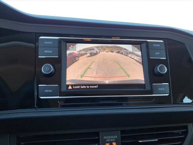 Storm Gray Artificial Leather, 4 Speakers, 4-Wheel Disc Brakes, ABS brakes, Active Blind Spot Monitor, Air Conditioning, Alloy wheels, Auto-dimming Rear-View mirror, Automatic temperature control, Brake assist, Bumpers: body-color, Delay-off headlights, Driver door bin, Driver vanity mirror, Dual front impact airbags, Dual front side impact airbags, Electronic Stability Control, Emergency communication system: VW Car-Net Safe & Secure 5-year, Exterior Parking Camera Rear, Front anti-roll bar, Front Bucket Seats, Front Center Armrest, Front dual zone A/C, Front wheel independent suspension, Fully automatic headlights, Heated door mirrors, Heated Front Seats, Heated front seats, Illuminated entry, Leather Shift Knob, Leather steering wheel, Low tire pressure warning, Occupant sensing airbag, Outside temperature display, Overhead airbag, Overhead console, Panic alarm, Passenger door bin, Passenger vanity mirror, Power door mirrors, Power driver seat, Power steering, Power windows, Radio data system, Radio: MIB3 Composition Color w/6.5 Touchscreen, Rain sensing wipers, Rear anti-roll bar, Rear reading lights, Rear seat center armrest, Rear window defroster, Remote keyless entry, Speed control, Speed-sensing steering, Split folding rear seat, Steering wheel mounted audio controls, Tachometer, Telescoping steering wheel, Tilt steering wheel, Traction control, Trip computer, V-Tex Leatherette Seat Trim, Variably intermittent wipers, and Wheels: 17 Twin 5-Spoke Silver Painted Alloy.