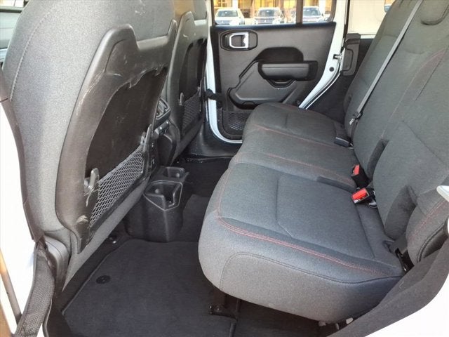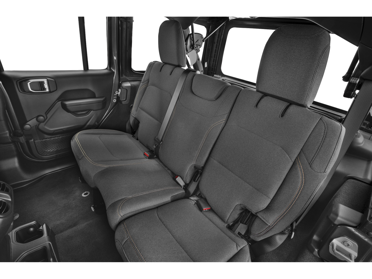 Quick Order Package 22R Rubicon, 4-Wheel Disc Brakes, 4.10 Rear Axle Ratio, 4G LTE Wi-Fi Hot Spot, 8 Speakers, 97 MPH Vehicle Max Speed Calibration, ABS brakes, Air Conditioning, Alloy wheels, AM/FM radio: SiriusXM, Apple CarPlay, Apple CarPlay/Android Auto, Automatic temperature control, Aux Battery, Auxiliary Switches, Black 3-Piece Hard Top, Brake assist, Class II Receiver Hitch, Cloth Low-Back Bucket Seats, Compass, Connectivity - US/Canada, Delay-off headlights, Driver door bin, Driver vanity mirror, Dual front impact airbags, Dual front side impact airbags, Electronic Stability Control, Emergency communication system: Jeep Connect, Freedom Panel Storage Bag, Front anti-roll bar, Front Bucket Seats, Front Center Armrest w/Storage, Front dual zone A/C, Front fog lights, Front License Plate Bracket (DISC), Front reading lights, Fully automatic headlights, Google Android Auto, Heated door mirrors, Illuminated entry, Integrated roll-over protection, Low tire pressure warning, Non-Lock Fuel Cap w/o Discriminator, Occupant sensing airbag, Outside temperature display, Overhead airbag, Panic alarm, ParkView Rear Back-Up Camera, Passenger door bin, Passenger vanity mirror, Performance Suspension, Power door mirrors, Power steering, Power windows, Radio data system, Radio: Uconnect 5 w/12.3 Display, Rear anti-roll bar, Rear reading lights, Rear Window Defroster, Rear Window Wiper/Washer, Remote keyless entry, Security system, Speed control, Split folding rear seat, Steering wheel mounted audio controls, Stop-Start Dual Battery System, Tachometer, Telescoping steering wheel, Tilt steering wheel, Traction control, Trip computer, Variably intermittent wipers, Voltmeter, and Wheels: 17 x 7.5 Machined/Painted Black.